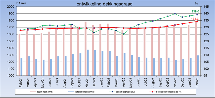 De actuele dekkingsgraad bedraagt eind februari 139,0%